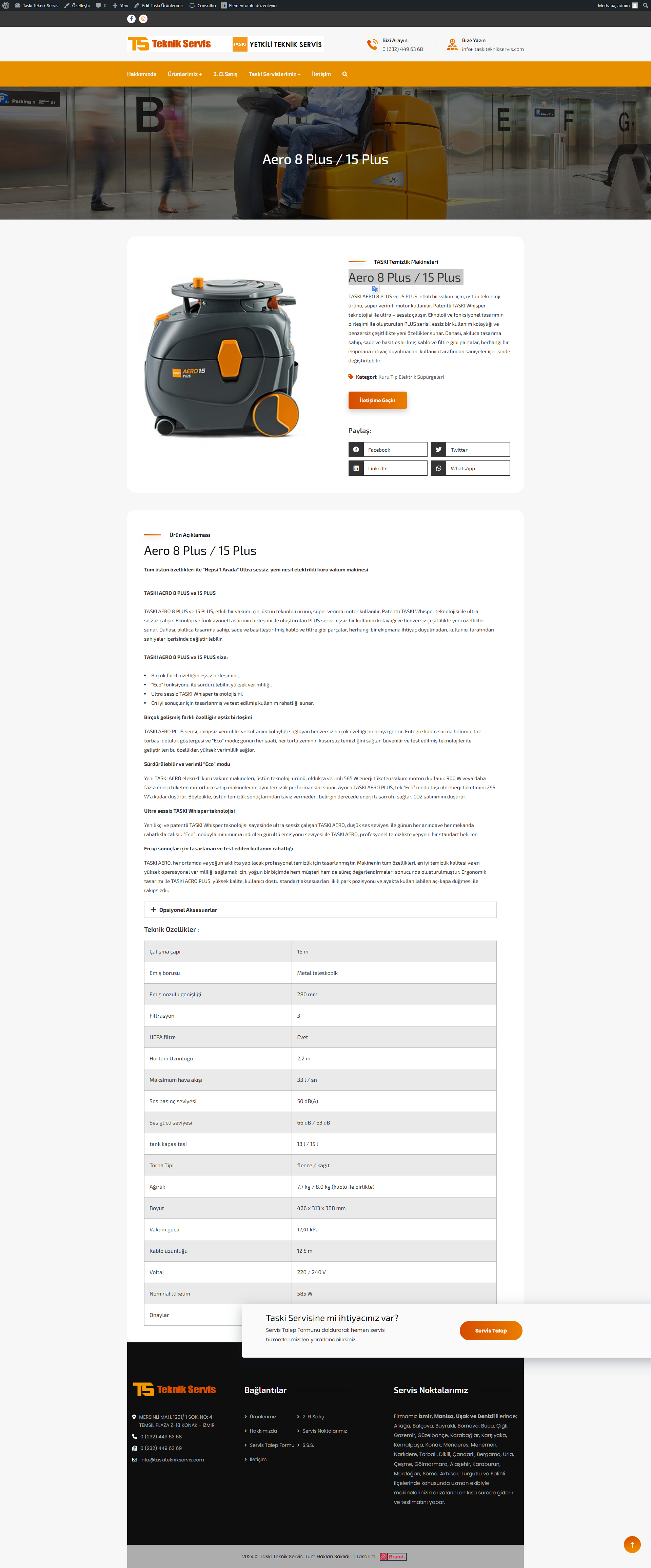 TASKI AERO 8 PLUS ve 15 PLUS size:
